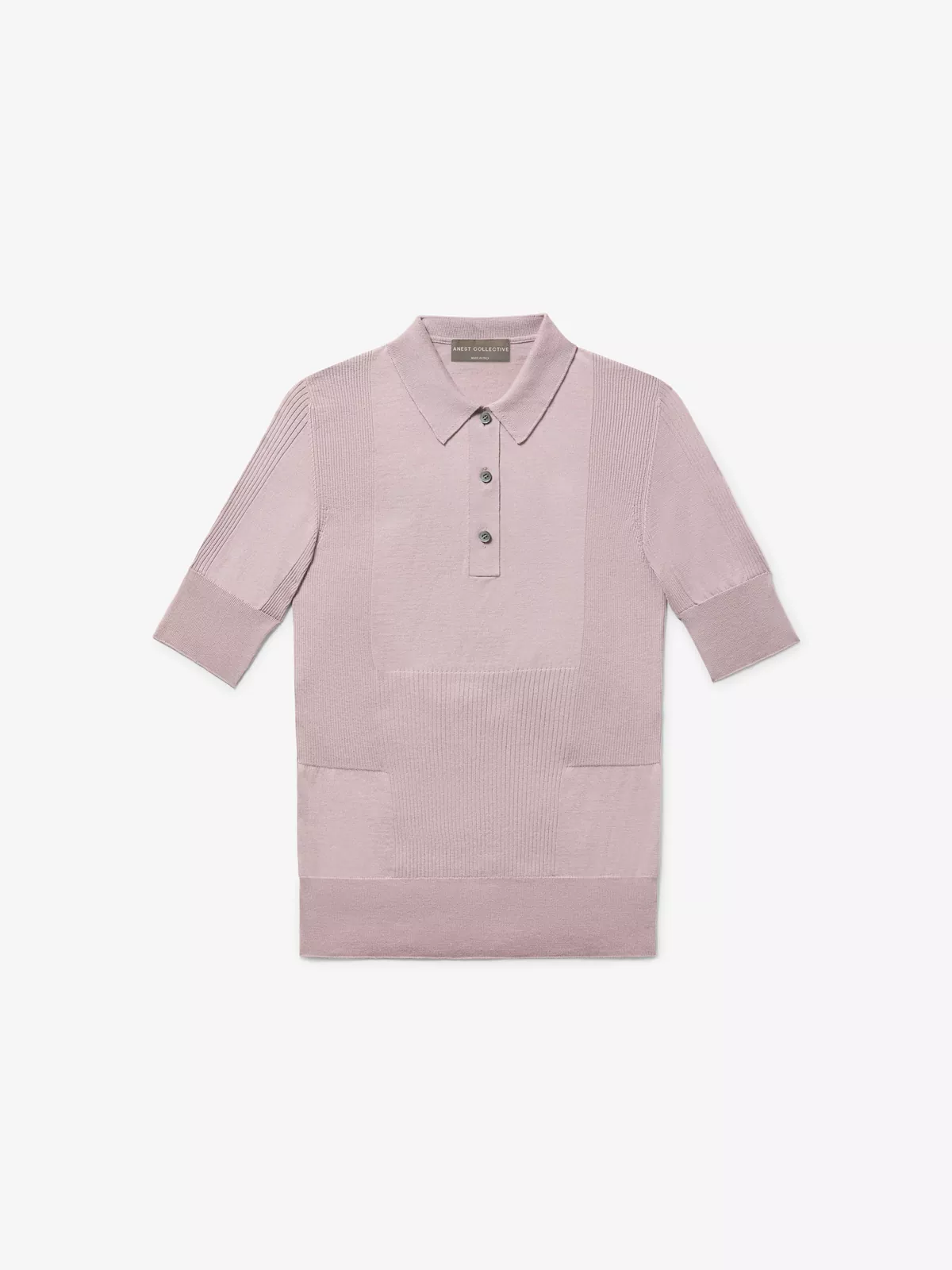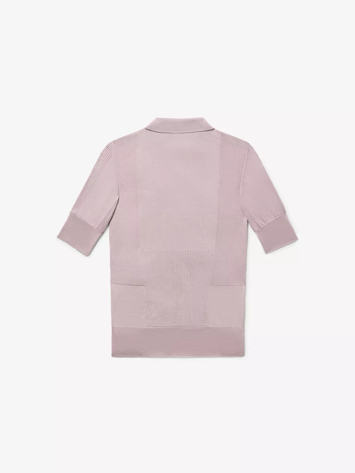 -55%桑蚕丝;45%棉 -灰粉色 -罗纹针织 -短袖 -ANEST Logo客制化母贝纽扣 -意大利制造