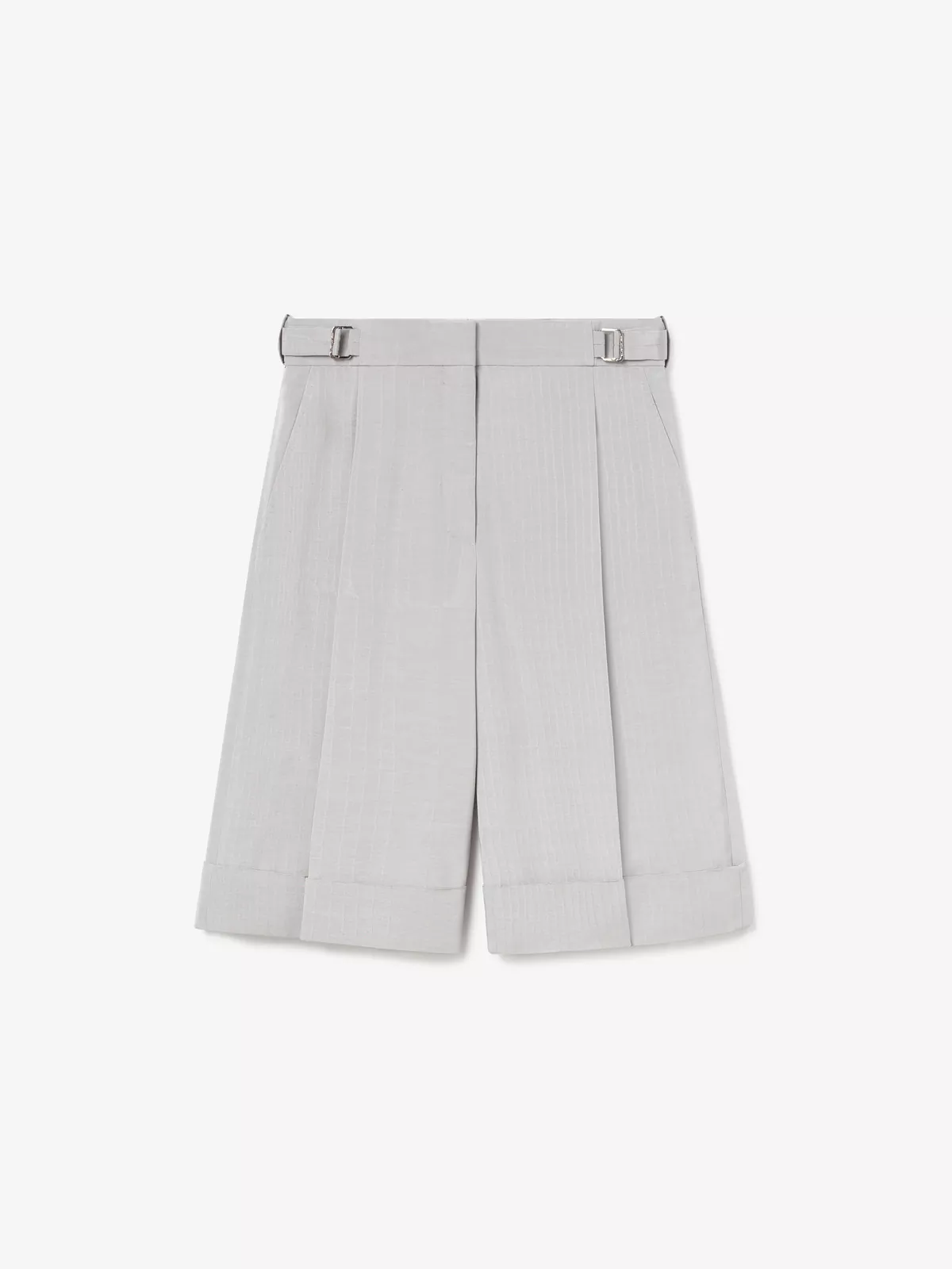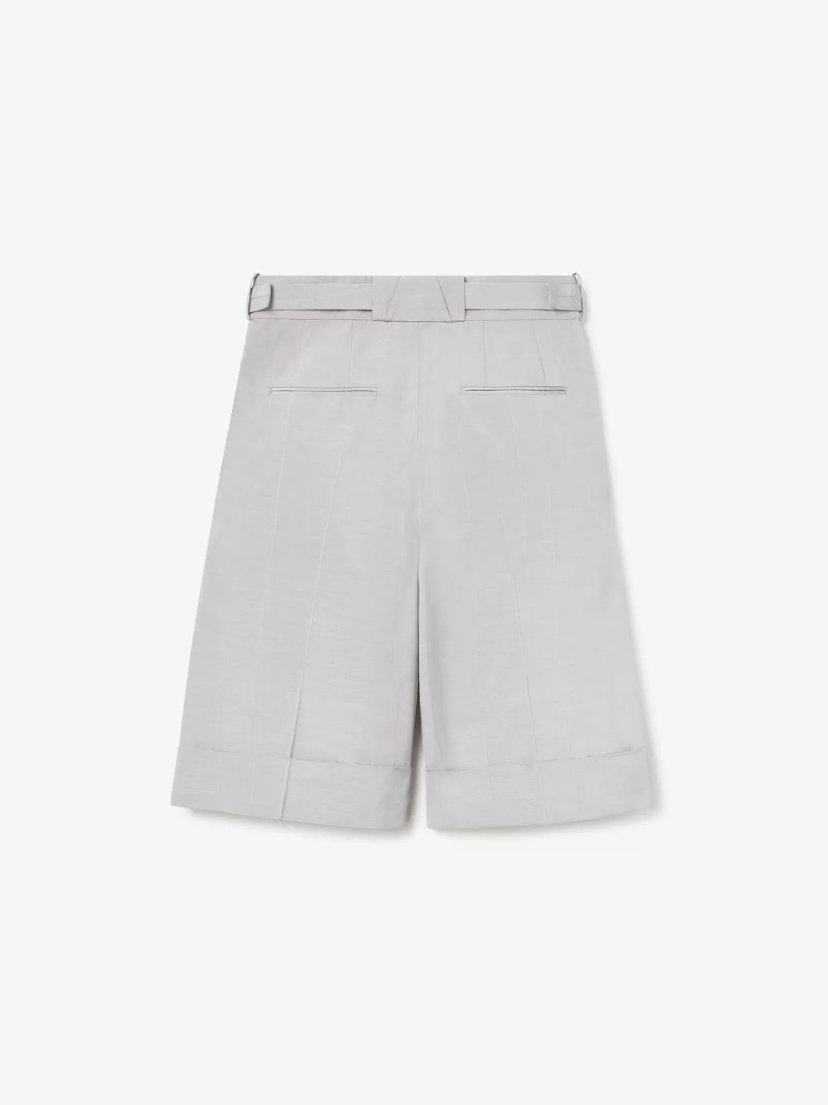 这款定制的都市短裤采用云纹剪裁而成,高腰设计,配有可调节腰带袖扣、锐利压褶、柔软的翻折和低调的侧袋。