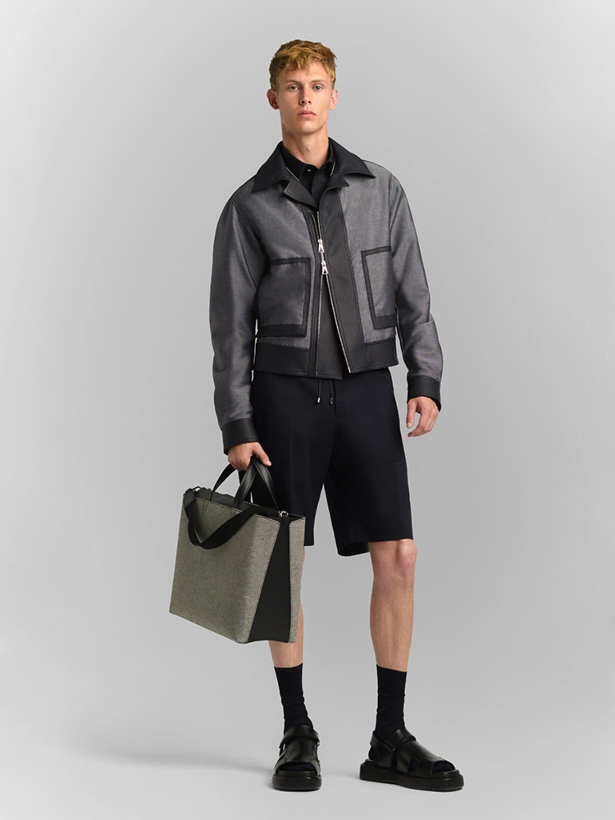 面料:100%小牛皮 帆布灰/午夜蓝 细节:60%马海毛40%羊毛 意大利制造