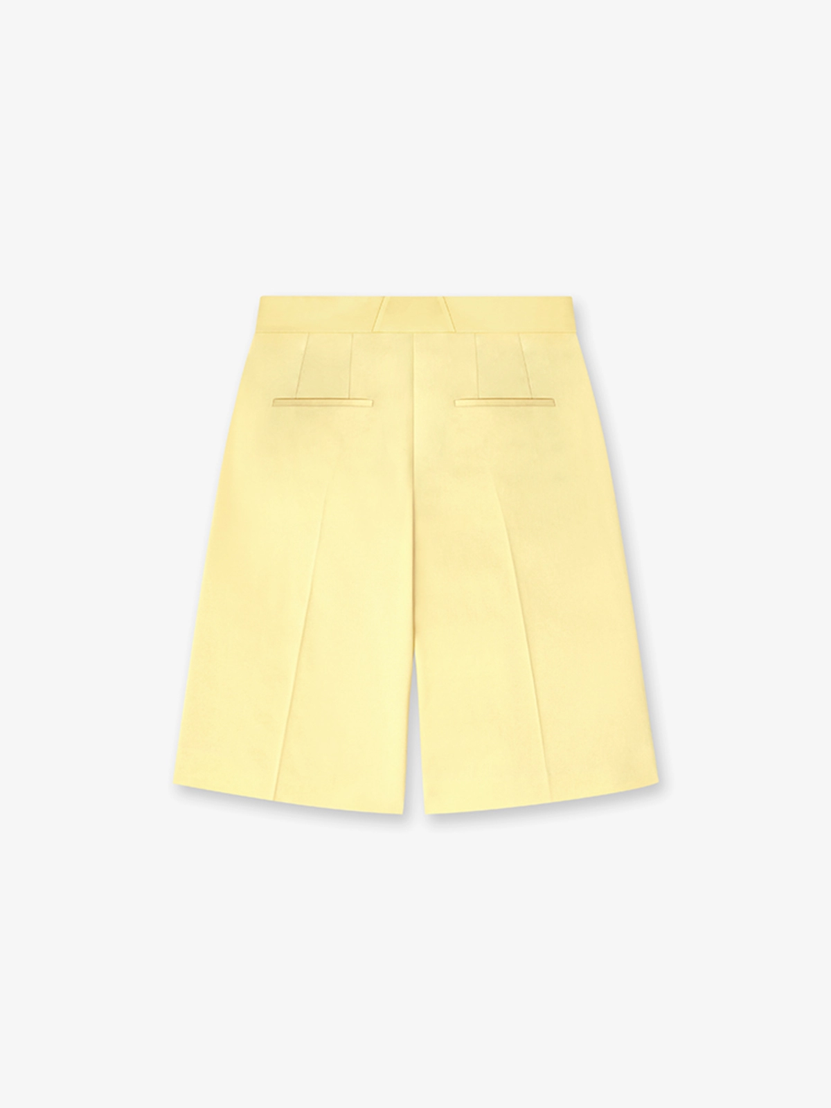 这款定制短裤由舒适的华达呢棉剪裁而成。高腰宽摆,前面有柔软的褶皱