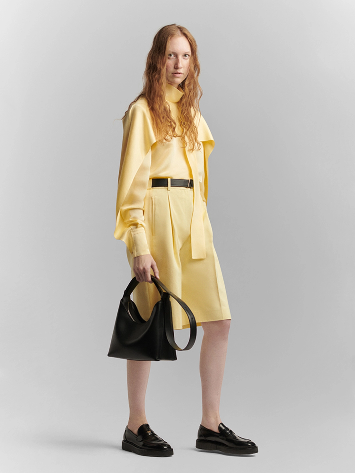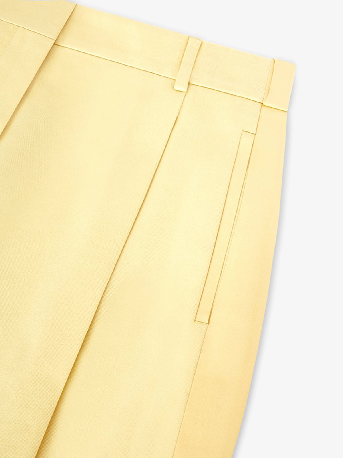 100%棉 烟雾黄 高腰 边带和口袋采用桑蚕丝缎面 意大利制造