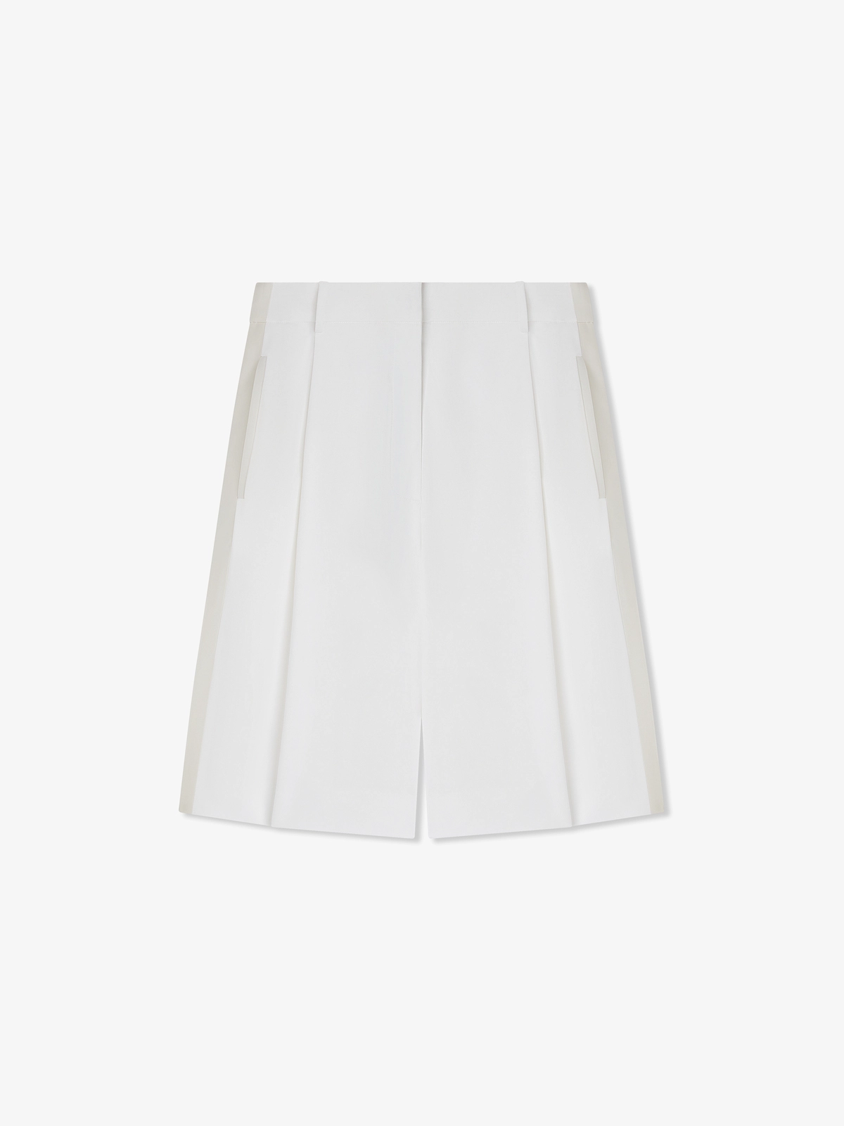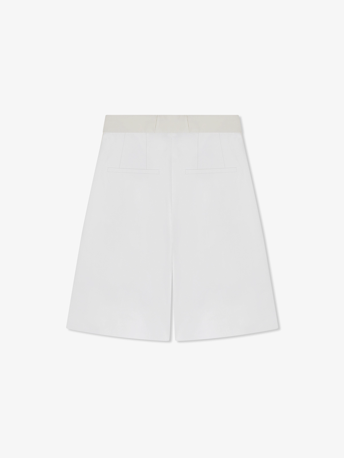 这款定制短裤由舒适的华达呢棉剪裁而成。高腰宽摆,前面有柔软的褶皱