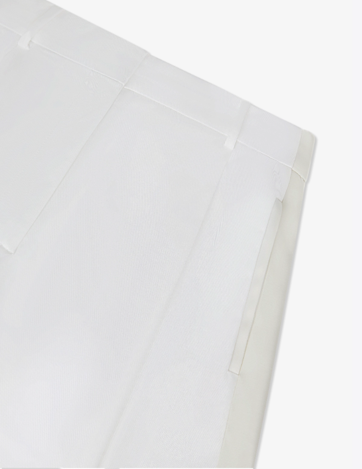 100%棉 白色 高腰 边带和口袋采用桑蚕丝缎面 意大利制造