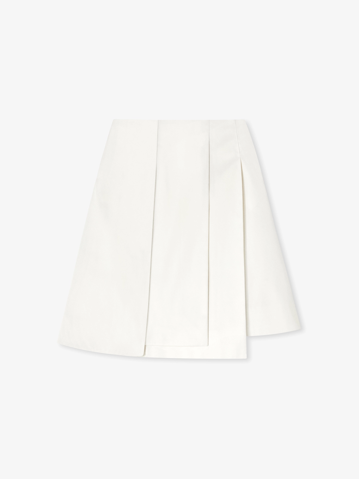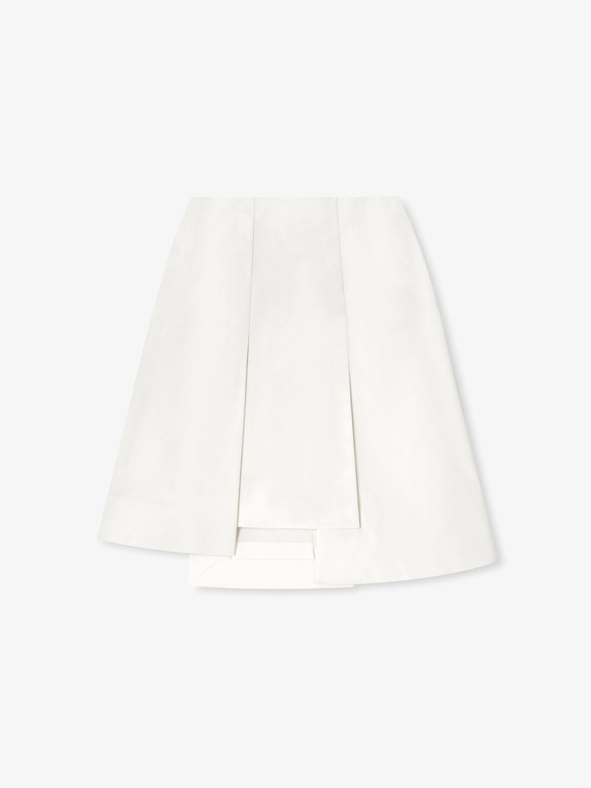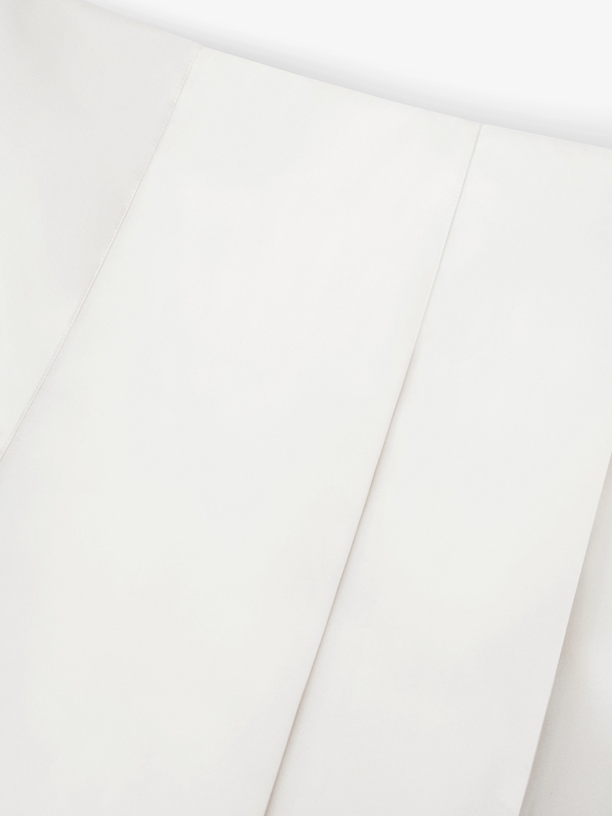 这款多层次及膝裙由羊毛桑蚕丝缎面定制面料制成。