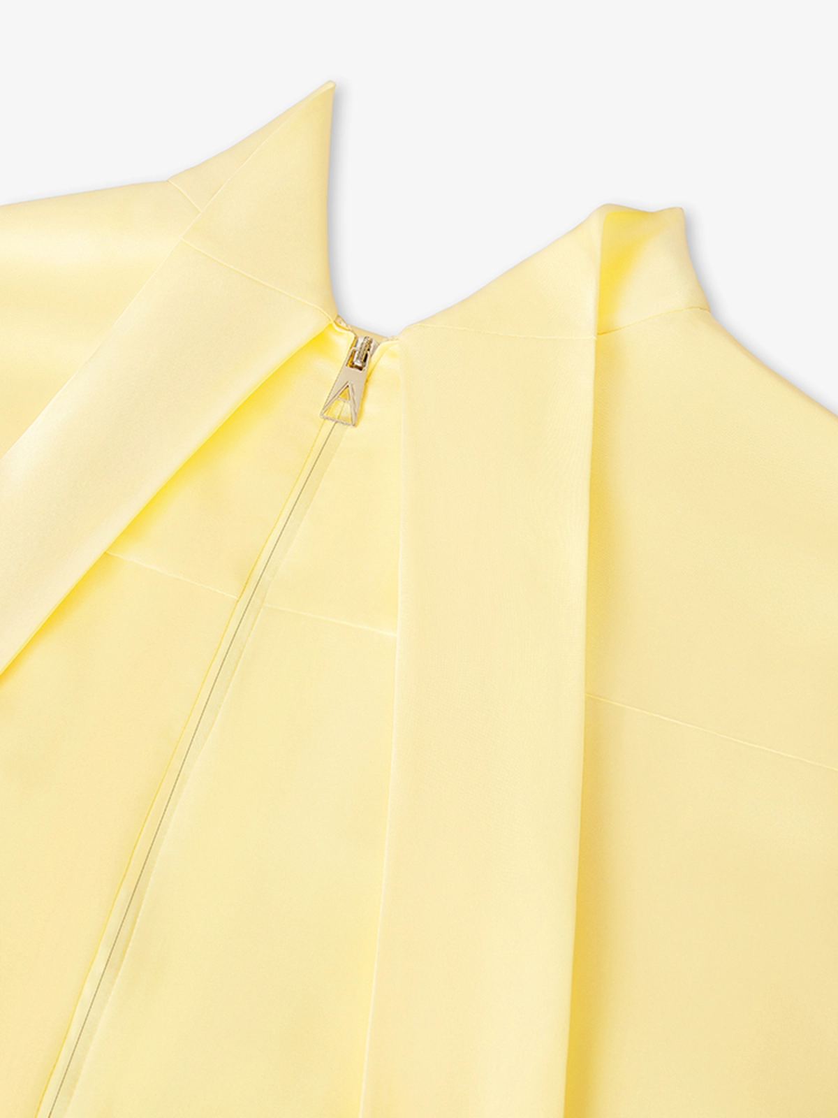 67%铜氨丝33%桑蚕丝 烟雾黄 露背细节 意大利制造