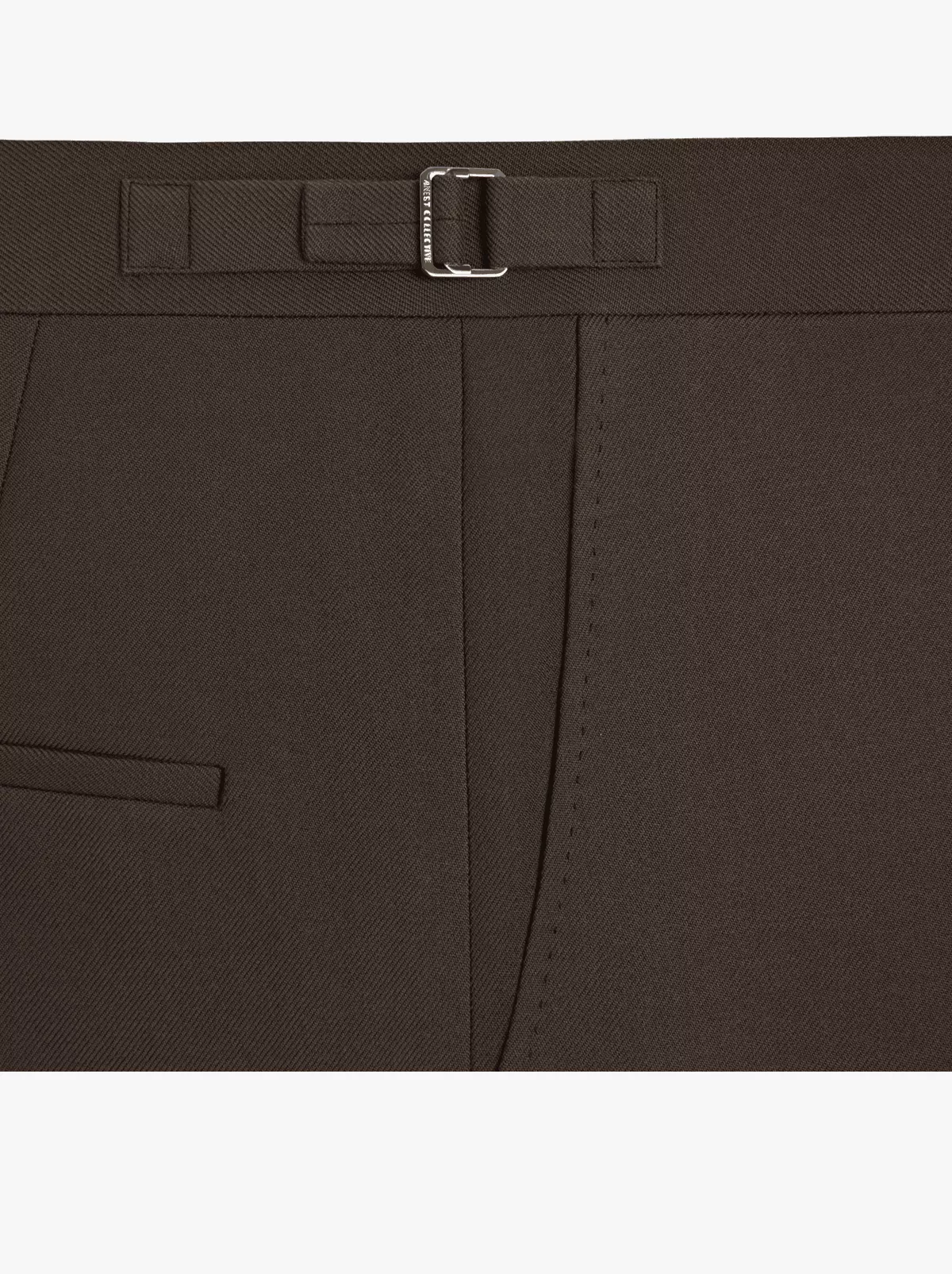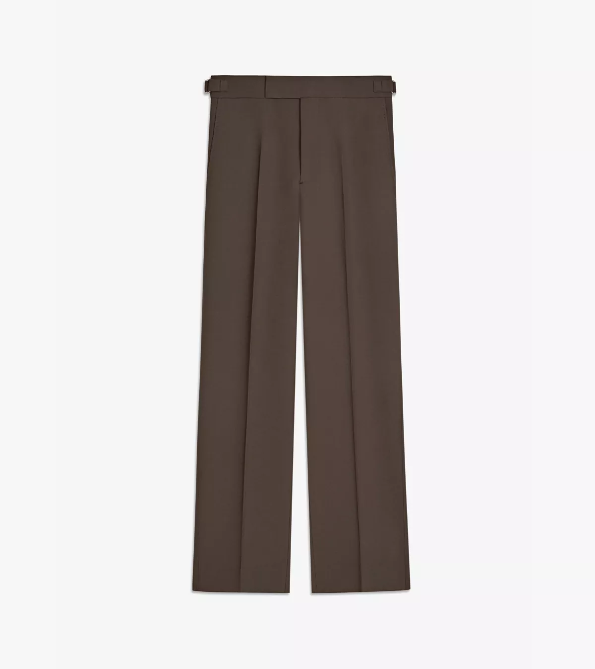 - 深棕色- 直筒裤- 侧调节腰袢 - 意大利面料- 100%羊毛- 意大利制造