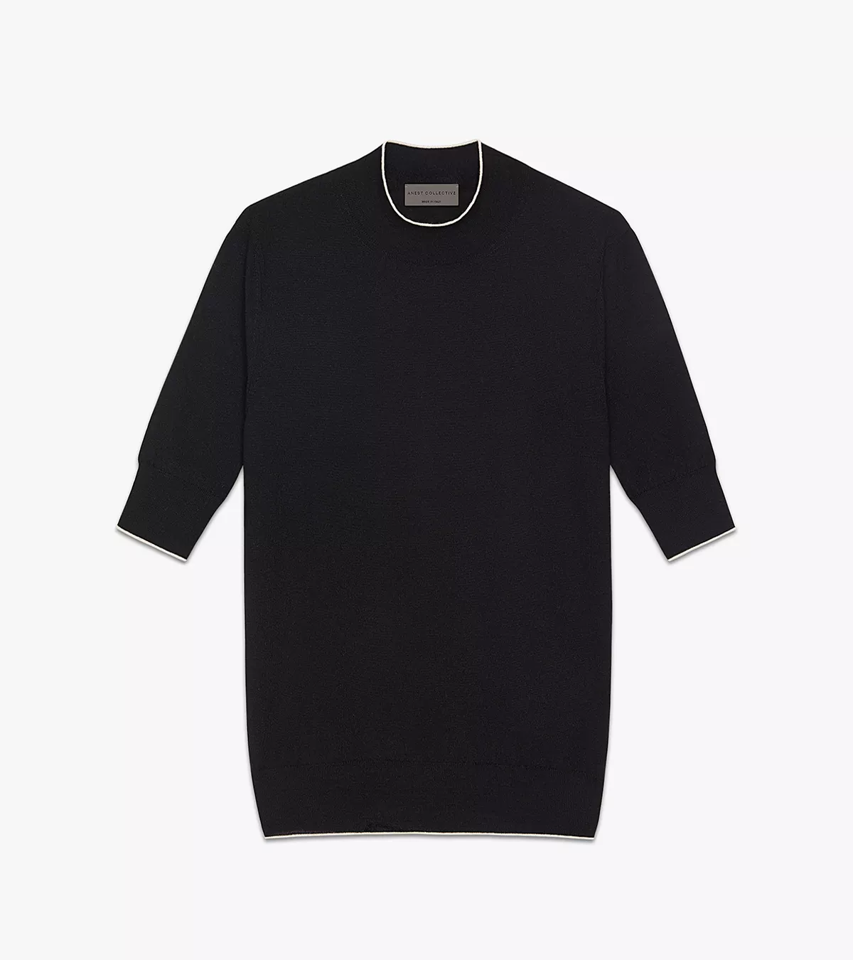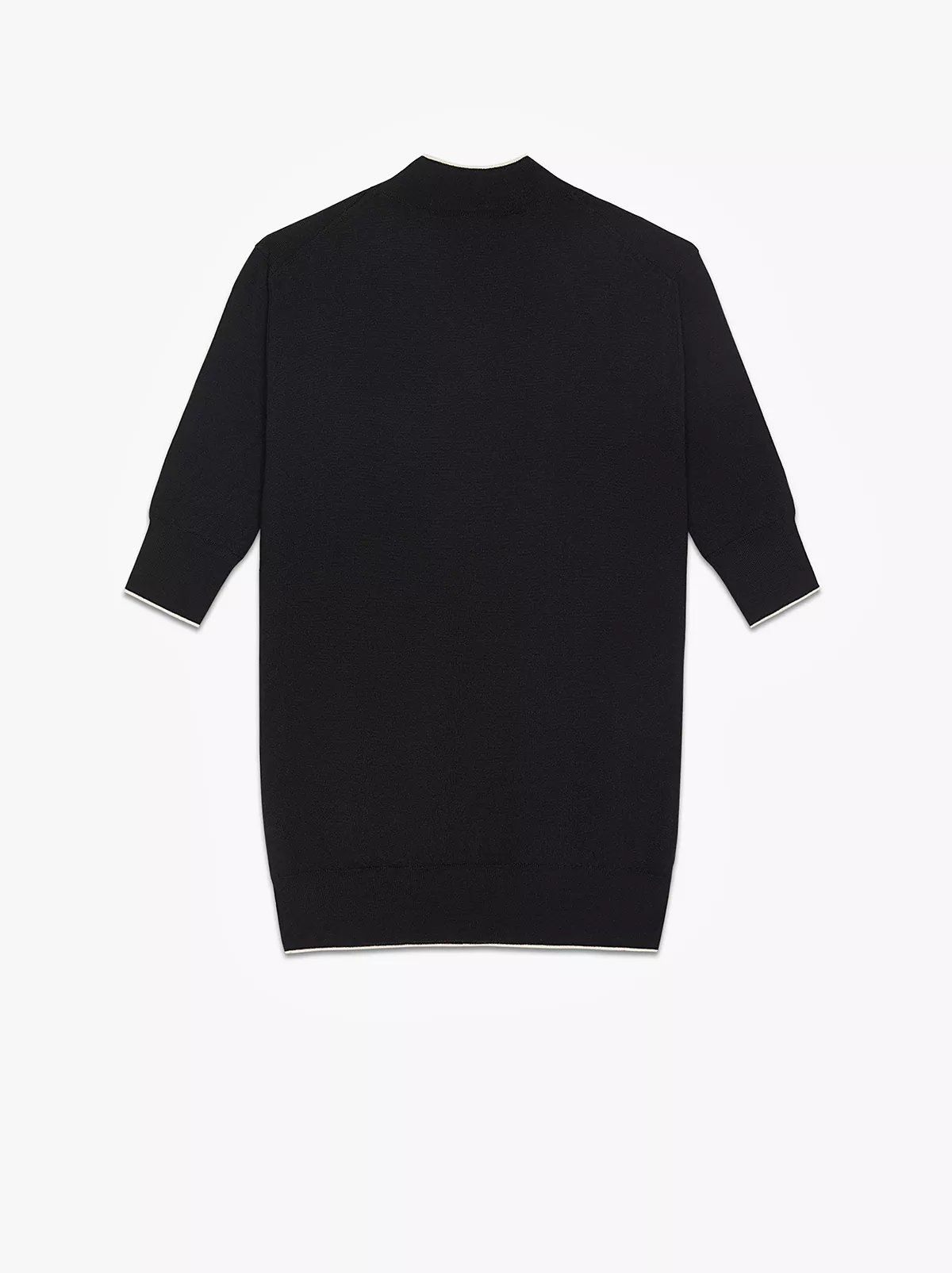 - 黑色/白杏色 - 小高领;中袖;罗纹边饰- 意大利纱线- 100% 极细美利奴羊毛- 18针1合股 - 意大利制造
