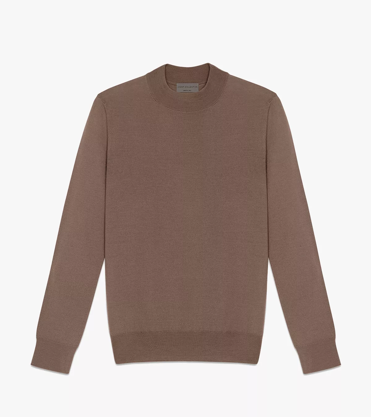- 栗色 - 小高领;长袖;罗纹边饰 - 意大利纱线- 100% 极细美利奴羊毛 - 18针一合股 - 意大利制造