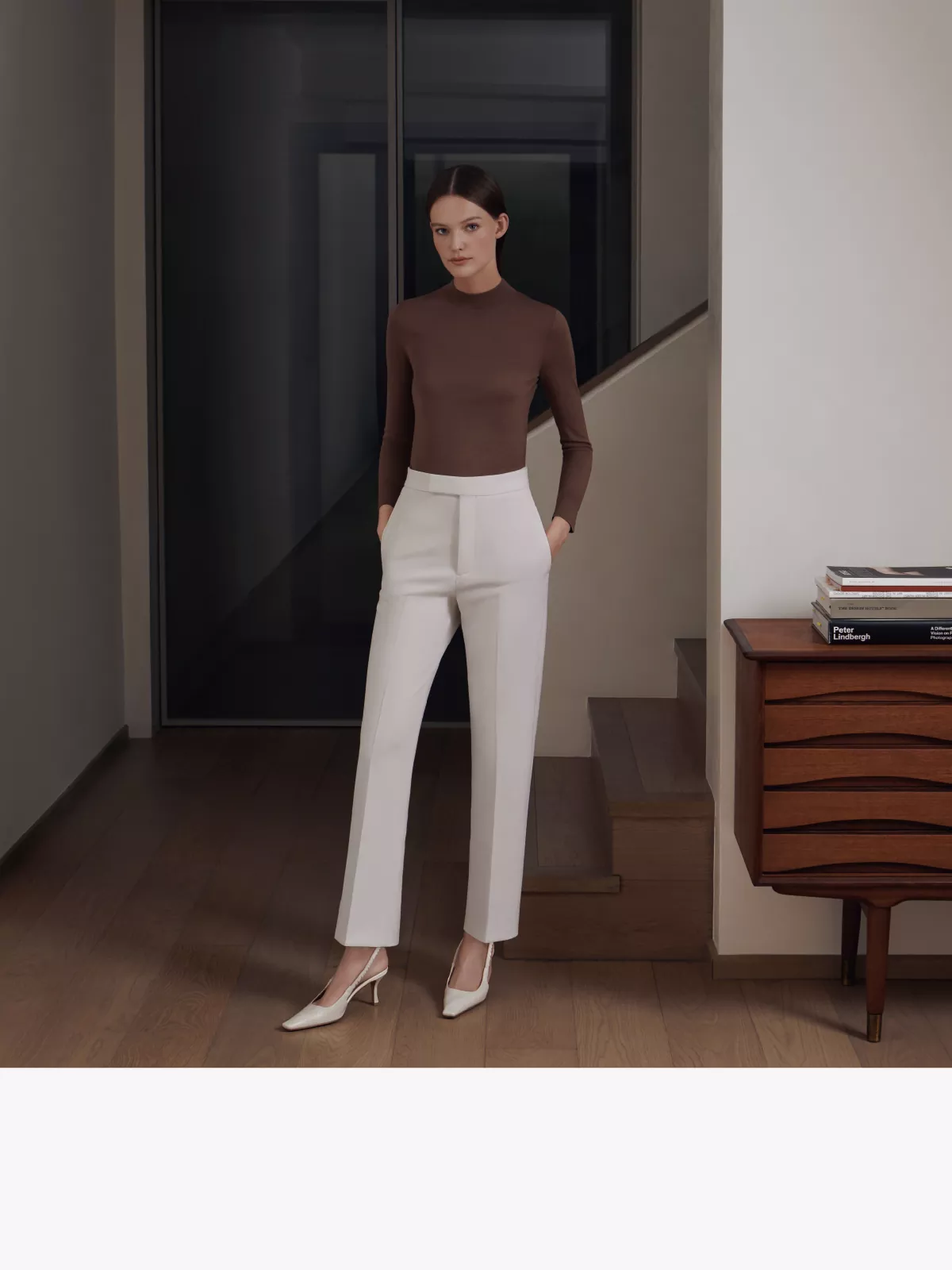 采用意大利超细织美利奴羊毛纱线制成。织品专属的无比柔软触感。小高领搭配修身版型为基础款型的设计细节。经久不衰的衣橱必备经典款式。