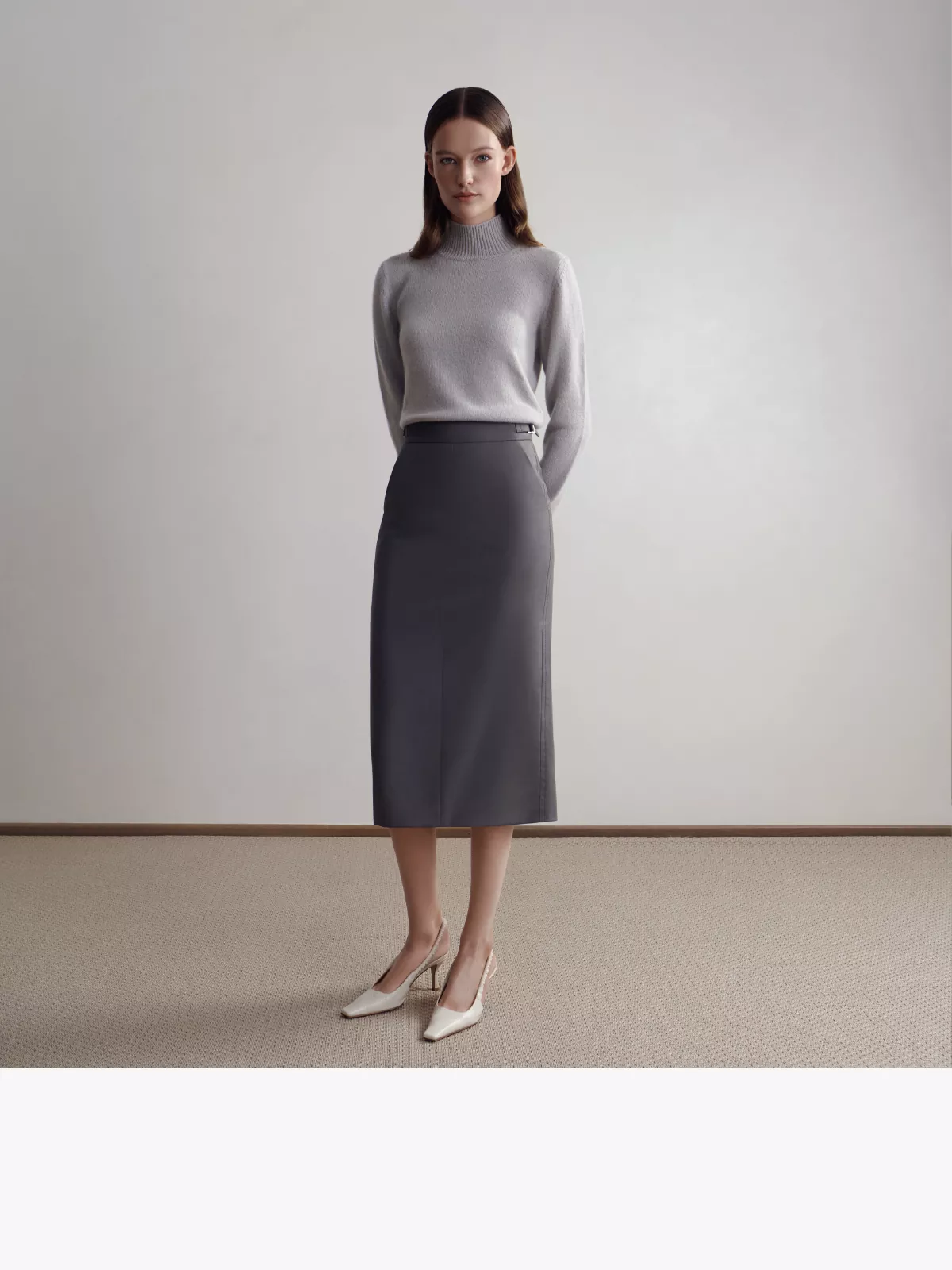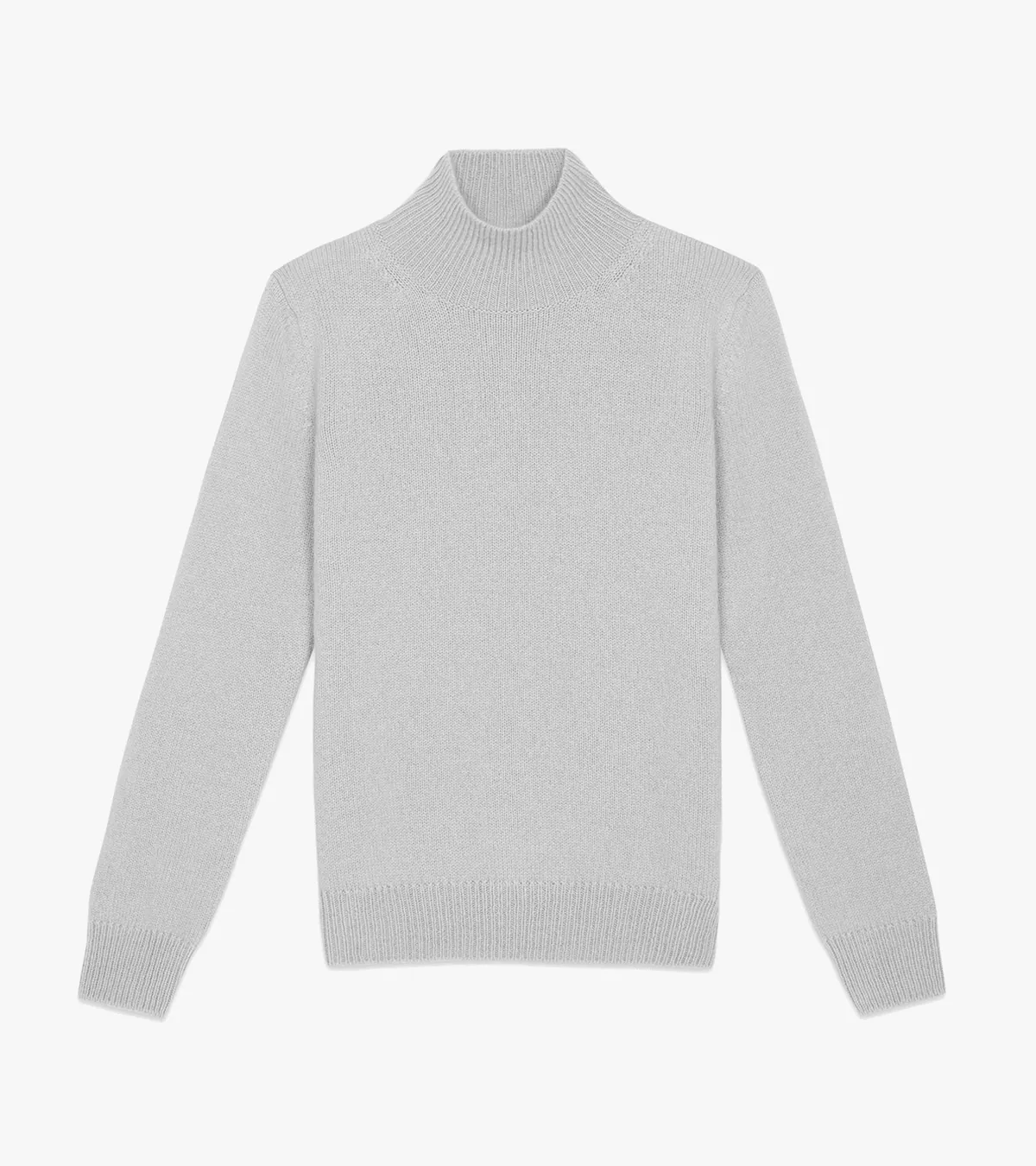 - 浅灰色- 半高领;长袖;罗纹边饰- 100%羊绒- 8针1合股- 意大利羊绒纱线- 意大利制造