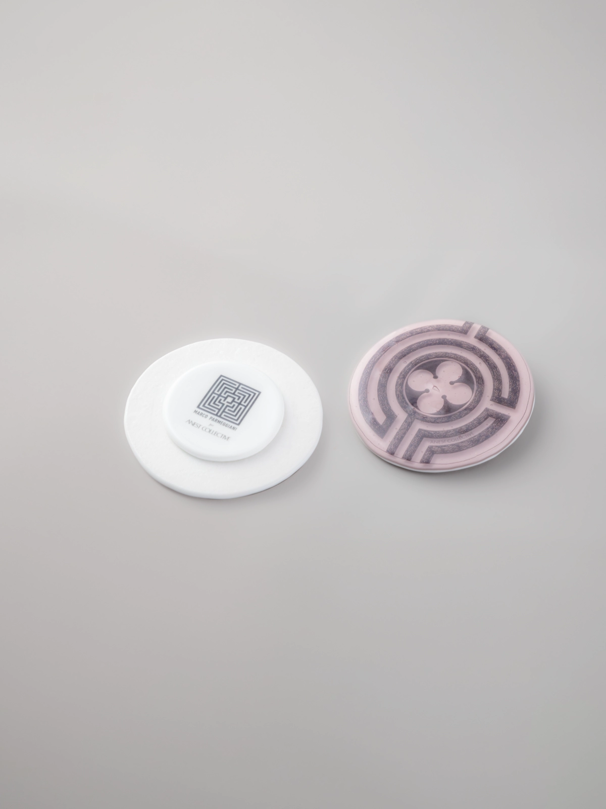 这些古老的方法造就了棱纹和格状纹理,使玻璃得以捕捉光线,让玻璃之美愈发夺目。“Goti de fornasa”,穆拉诺玻璃匠人的传统饮具之名。往昔岁月,匠人巧用工坊富余料,于炉边时光铸就形态各异的灵动杯身,每一只皆为创意结晶。每一件作品均附带饰有迷宫图案的托盘,兼具烛台与盖子的双重功能,在实用与艺术之间达到完美平衡。蜡烛香味源自托尔切洛 (Torcello)的宁静之美,那是一座以拜占庭教堂为中心的岛屿花园。天竺葵的香气唤起了葱郁的花卉景观,而焚香和沉香的气息则让人回想起岛屿中心以及威尼斯宫殿的神圣氛围。三者共同营造出一种宁静、引人沉思的馥郁芬芳,于每寸空间中悠悠萦绕,久久不散。