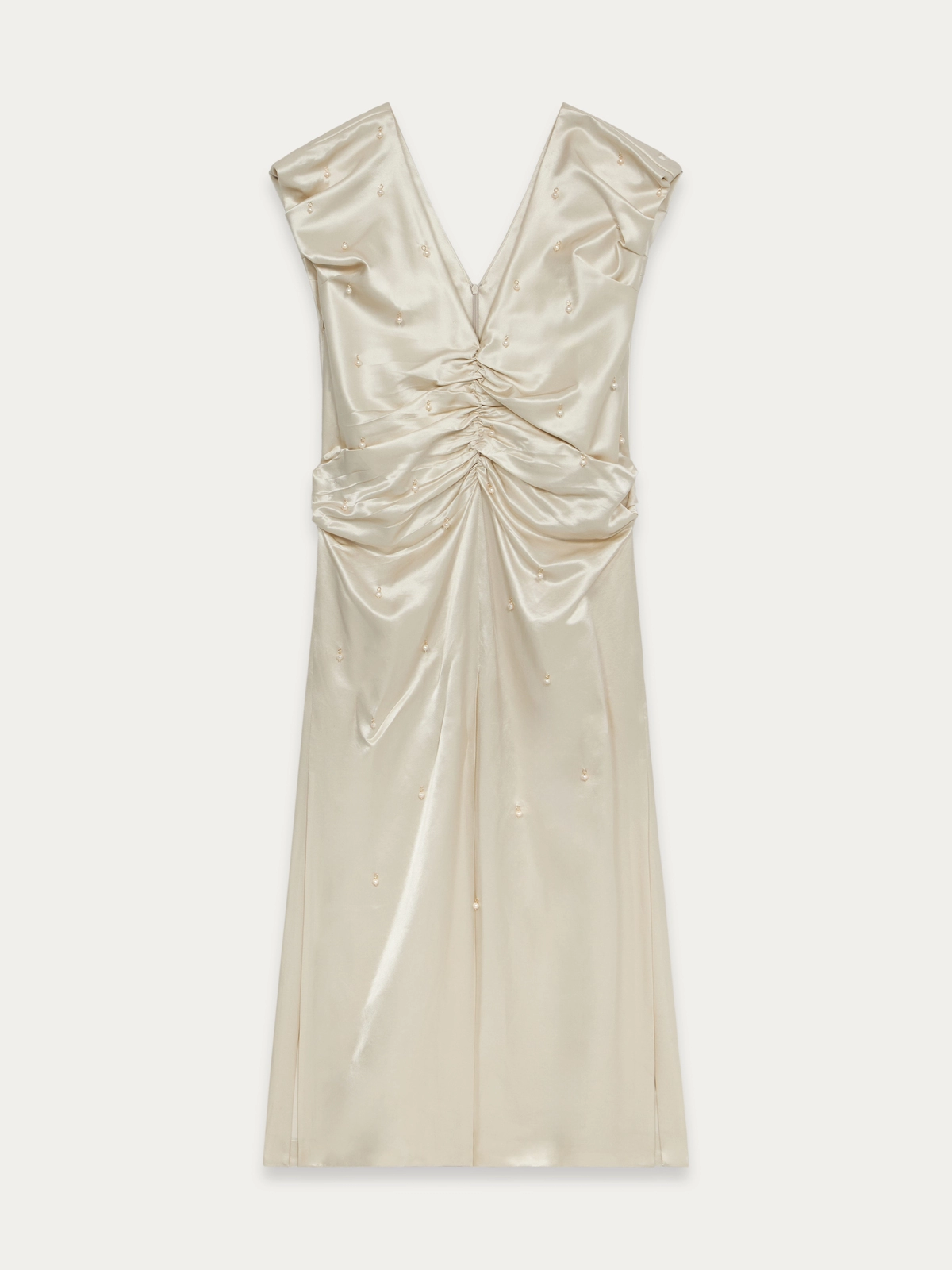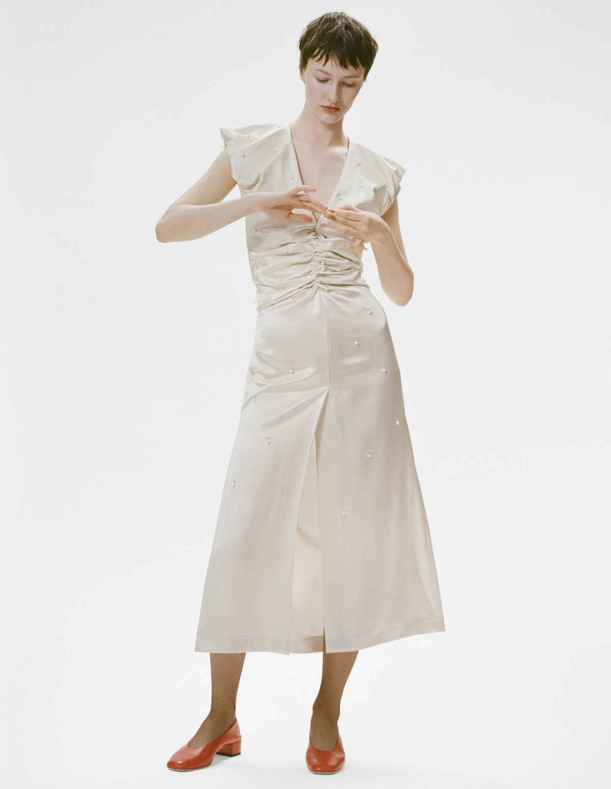 这款Pearl礼服重新诠释了经典的滑裙,将其从内衣升华为一件艺术化的外衣。