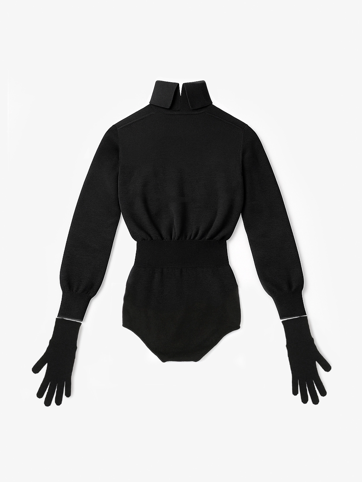 这款 ANEST 连体衣的设计简约而不失精致。它采用羊毛和真丝混纺的面料,既保证了穿着的舒适度,又赋予了衣物优雅的质感。高领设计不仅保暖,还显得颈部线条更加修长。袖子延伸至手腕,并巧妙地设计为可拆卸的手套,这一细节是整款衣服的亮点,让整体造型更加独特和别致。