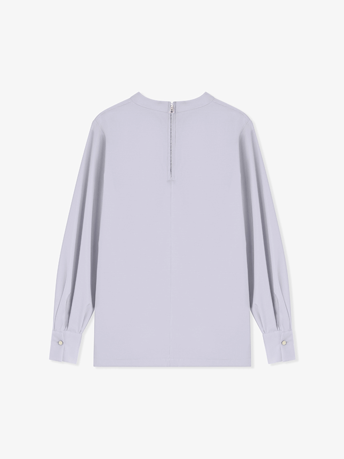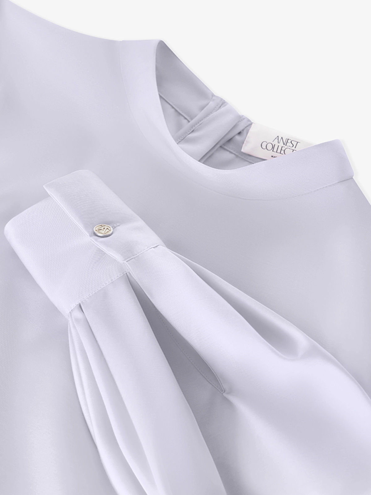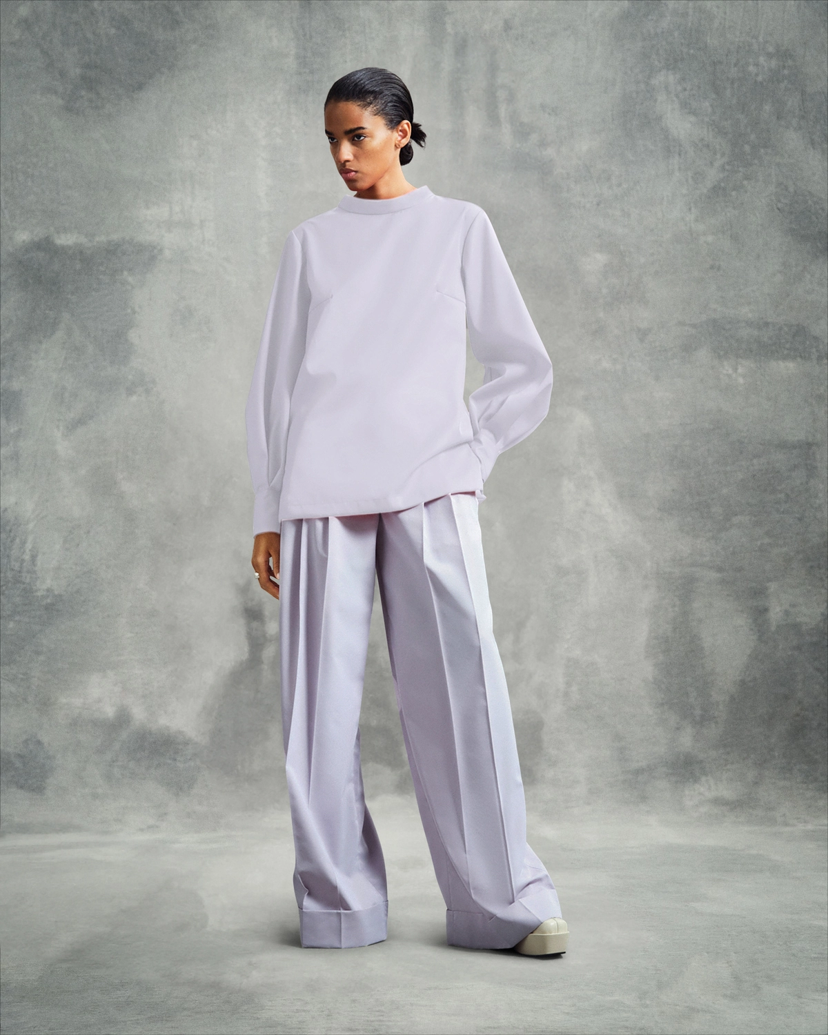 这款紧密编织的羊毛尼龙衬衫具有立领,泡泡袖和侧边开口设计。背部采用拉链闭合,配有品牌标志性的‘A’拉链扣。
