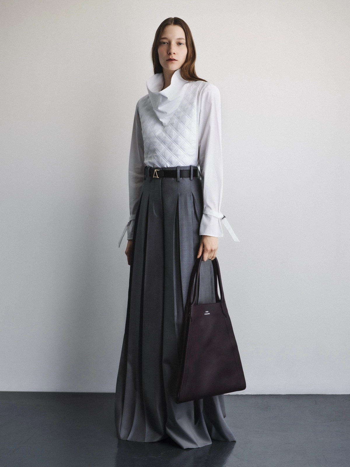 前片百褶仿若裙装般灵动飘逸,赋予长裤流畅的线条, 为传统剪裁提供了精致休闲之感。